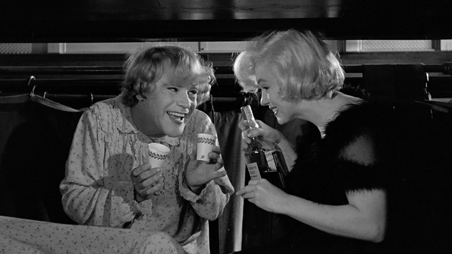 Deux musiciens, Jerry (Jack Lemmon) et Joe (Tony Curtis), assistent bien malgré eux à un règlement de compte entre deux bandes de gangsters. Afin d’échapper aux tueurs, ils trouvent refuge au sein d’un orchestre exclusivement féminin, les Sweet Sue and her Society Syncopators, et le suivent à bord d’un train à destination de la Floride. Pour y parvenir, les deux compères se travestissent en femmes. Joe devient Joséphine et Jerry choisit Daphné comme petit nom. Adaptée d’un film français de 1935, Fanfare d’amour, cette œuvre mythique de Billy Wilder s’appuie sur un trio d’acteurs époustouflant : Tony Curtis, Jack Lemmon et surtout Marilyn Monroe, alors au sommet de sa gloire et qui pour ce rôle remporta en 1960 le Golden Globe de la meilleure actrice dans une comédie. Cette comédie romantique mythique constitue l’un des rôles les plus connus de Marylin Monroe. Pourtant l’actrice a, dans un premier temps, refusé de jouer dans le film, lassée des rôles de jeunes femmes écervelées. Mais ses difficultés financières l’ont obligé à accepter la proposition de Billy Wilder.